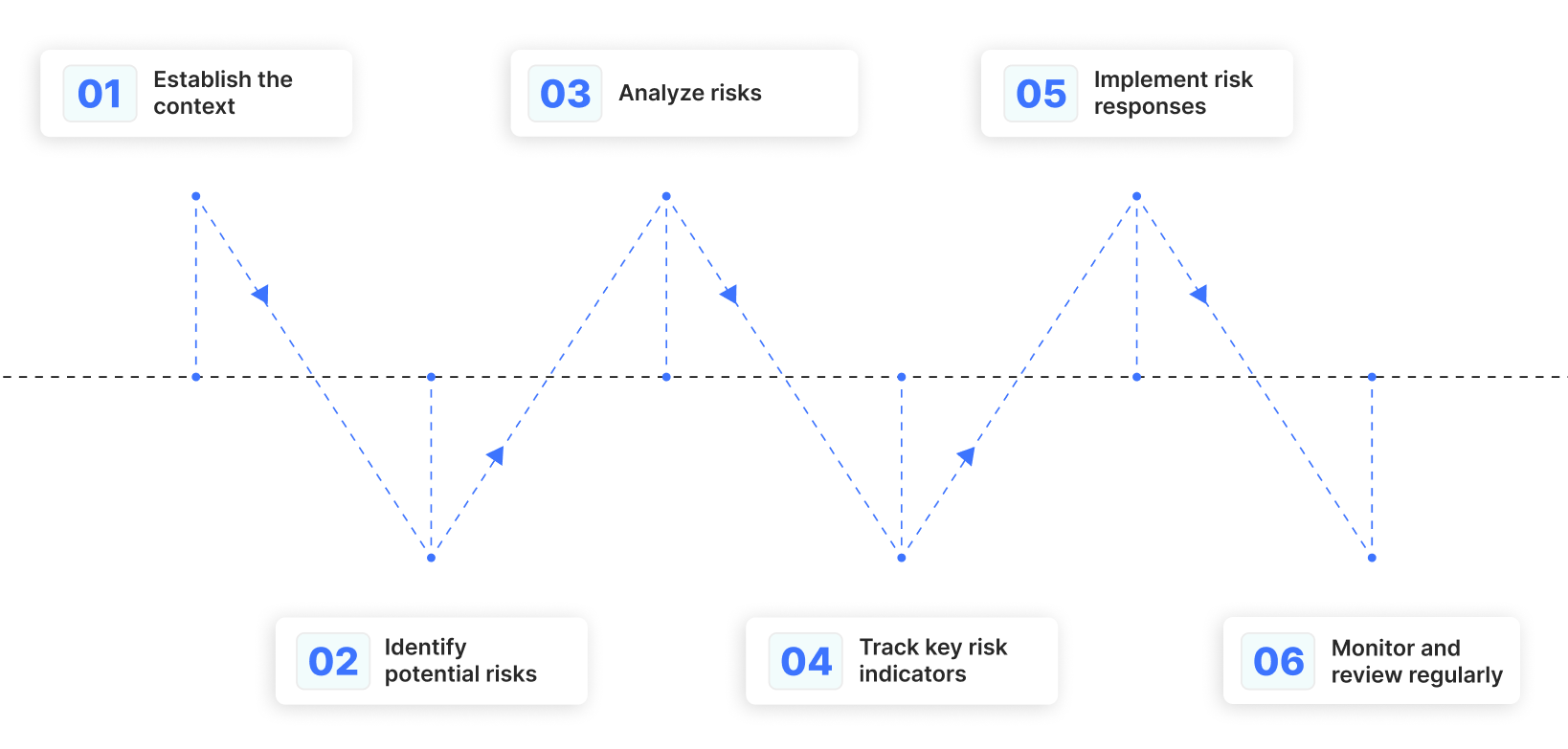 Continuous risk monitoring doesn’t happen by accident; it’s built on a structured process that brings focus, accountability, and visibility to your risk landscape. Here's how effective organizations approach it step by step: