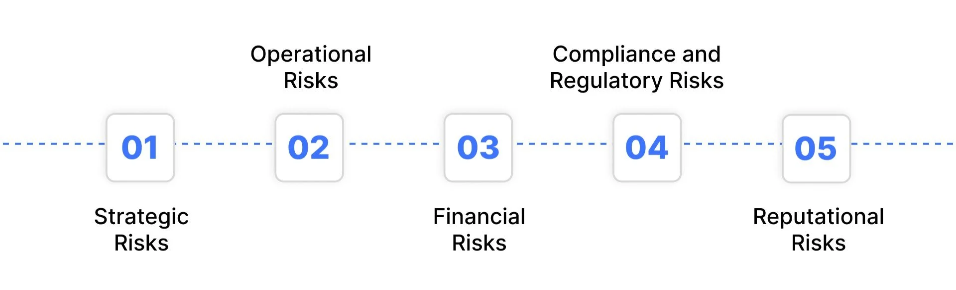 These arise when a company’s long-term goals or business decisions fail to align with market realities. Examples include entering a declining market, misjudging consumer demand, or failing to innovate quickly enough. Strategic risks can jeopardize growth, competitiveness, and sustainability.
