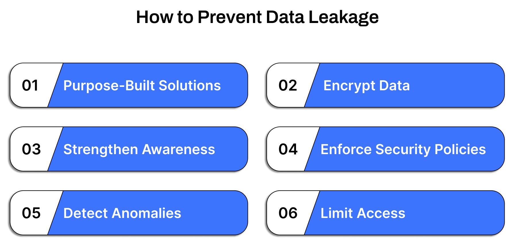 Preventing data leakage requires more than a one-size-fits-all solution; it demands a layered, strategic approach that spans technology, policies, and human behavior. Here’s how to build an effective defense:
