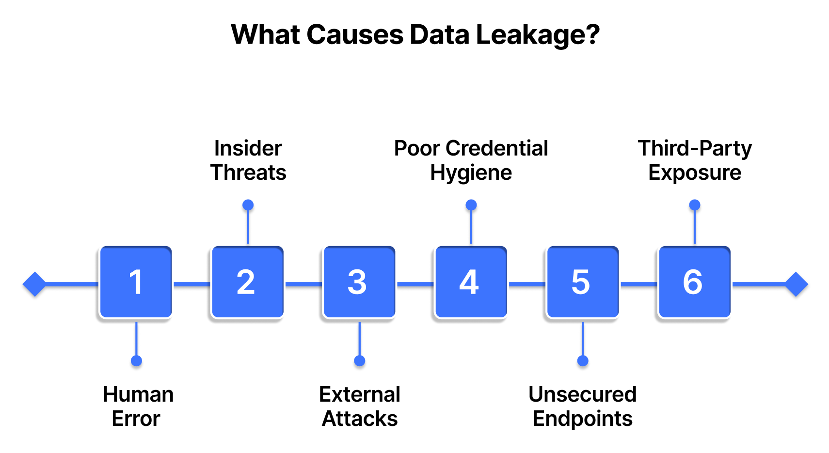 Data leakage can stem from a variety of sources, many of which are avoidable with the right controls and awareness. Here are some of the most common culprits: