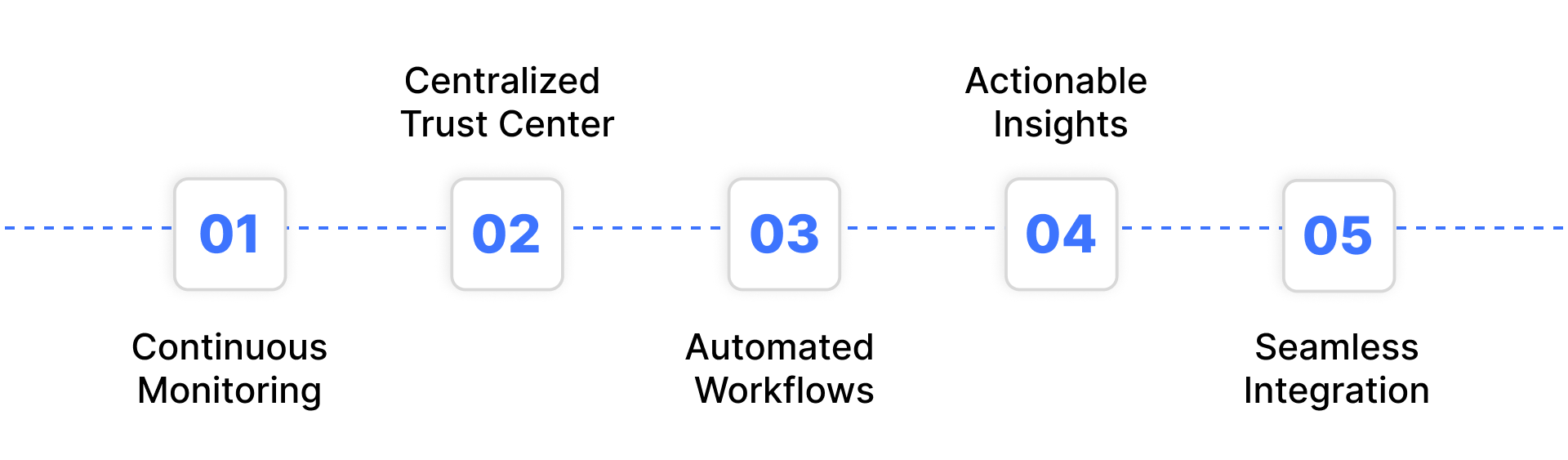 - A centralized Trust Center provides visibility and transparency across vendors.