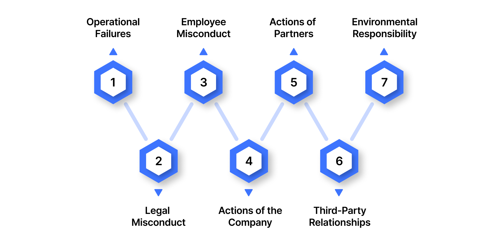 Reputational risk is multifaceted, it doesn’t arise from a single source but from a combination of internal actions, external associations, and public perception. Below are the most common types organizations need to watch closely: