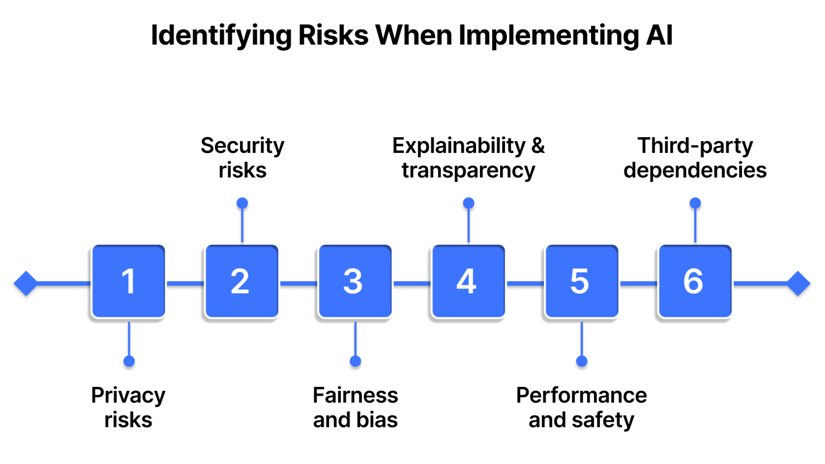 A structured risk identification process helps organizations surface, categorize, and evaluate these exposures before they evolve into costly incidents. Below are six critical categories of AI risk to assess across your implementation pipeline:
