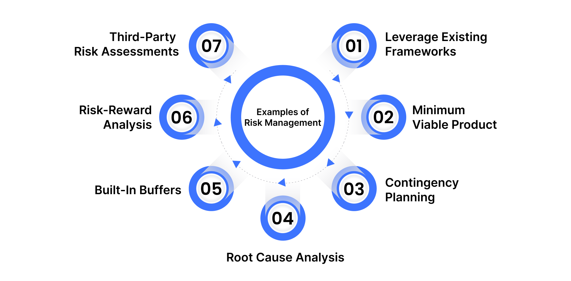 - Strategies include utilizing frameworks, MVP development, contingency planning, root cause analysis, and third-party risk assessments.