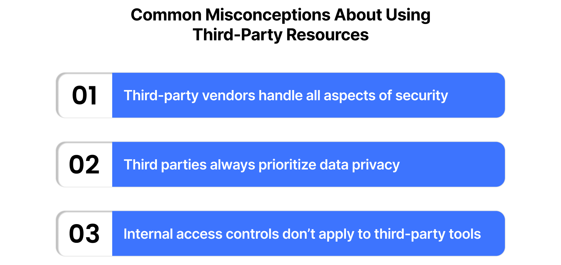 Third-party integrations offer speed, specialization, and scalability but also introduce complexities that many teams underestimate. Misunderstandings around access, accountability, and risk ownership can leave organizations exposed to avoidable threats. Below are three common myths that hinder effective third-party risk management in cloud computing.