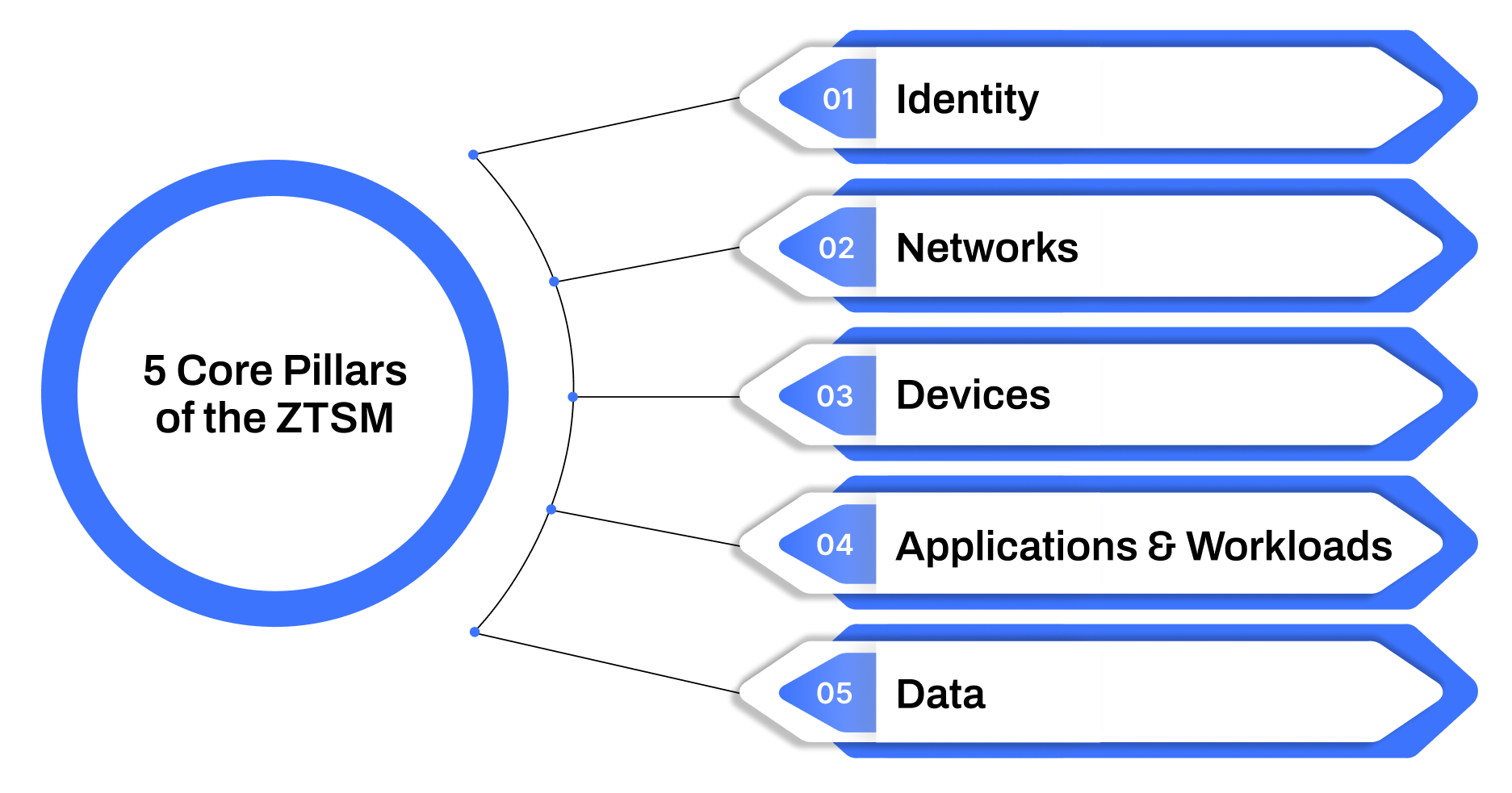 Zero Trust isn't built on blind faith or static boundaries. Instead, it operates on the assumption that threats can exist both inside and outside the network. To enforce this mindset, organizations must architect their security strategies around five key pillars. Together, these elements ensure that access is precisely controlled, continuously evaluated, and always aligned with real-time risk.