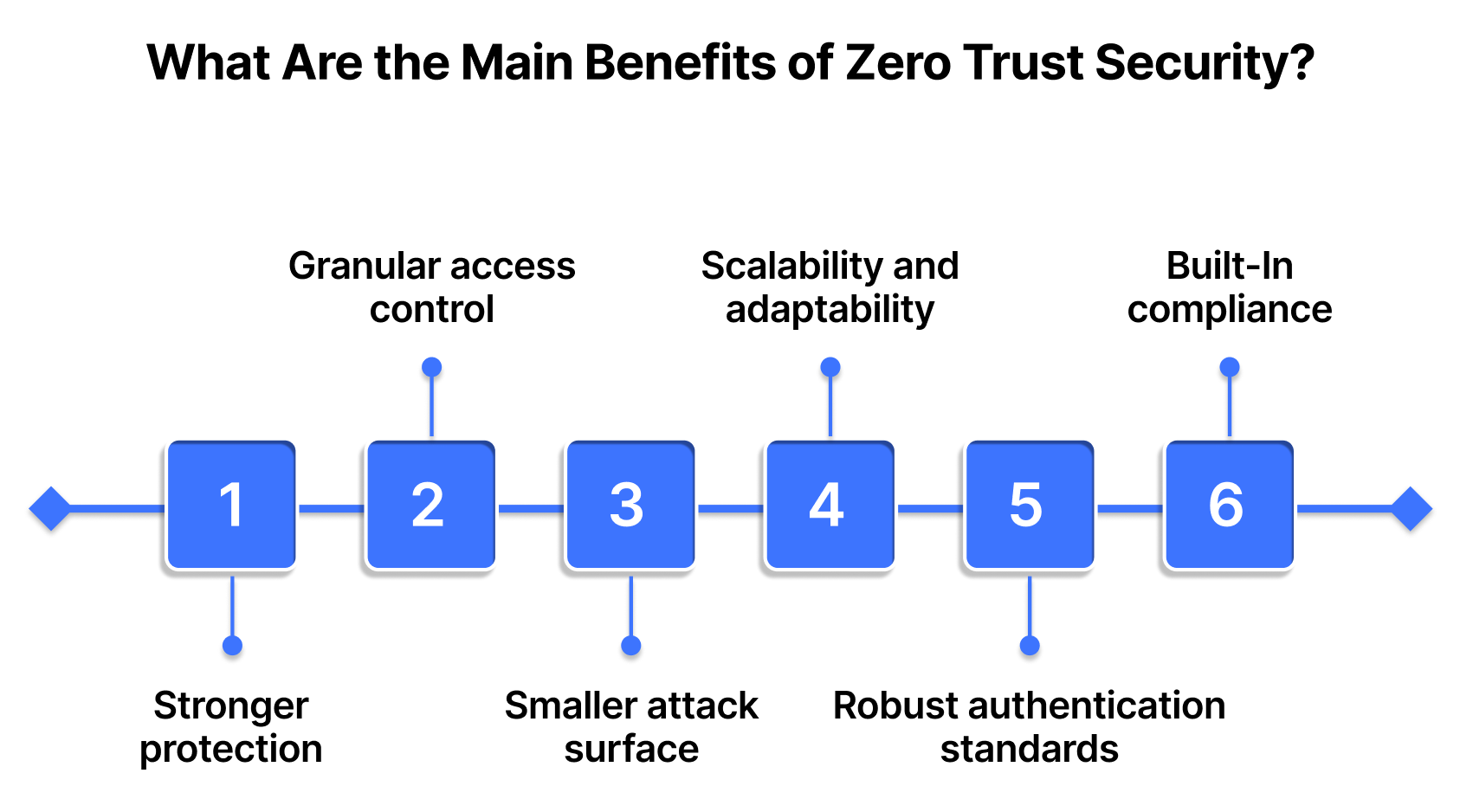 - Benefits include stronger access control, reduced attack surface, and better compliance with frameworks like NIST and GDPR.